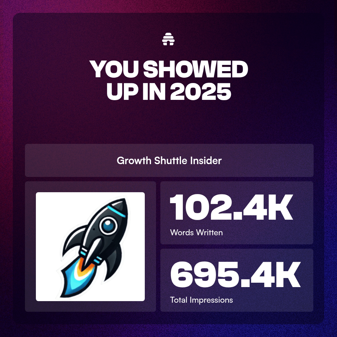 🚀 1:1 Consulting. At Growth Shuttle, I run two popular plans: Async Advisory ($3,500/mo) for $5M - $50M founders and executive teams and the smaller Strategic Growth Circle ($997/mo) for $100K - $1M entrepreneurs, agency founders, and scale ups.
